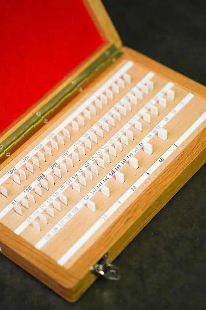 Auf Wunsch und gegen Verrechnung der Kosten liefern wir einen Kalibrierschein der Physikalisch-Technischen Bundesanstalt mit. In den meisten Betrieben kommt man mit einer Toleranzklasse nicht aus, da die Messgenauigkeit in den einzelnen Betriebsabteilungen und Fertigungsstufen sehr unterschiedlich ist. Aber gerade diese Tatsache ermöglicht die wirtschaftlichste Nutzung der Endmaße. Sind zum Beispiel die Endmaße Toleranzklasse 0 durch häufigen Gebrauch für die Kontrolle nicht mehr genau genug, so werden diese an eine Abteilung oder an einen Arbeitsplatz weitergegeben, dessen Anforderung an die Messgenauigkeit entsprechend niedriger liegt. Allerdings ist es empfehlenswert, die Endmaße vor der Weitergabe zur Kalibrierung an uns einzusenden.